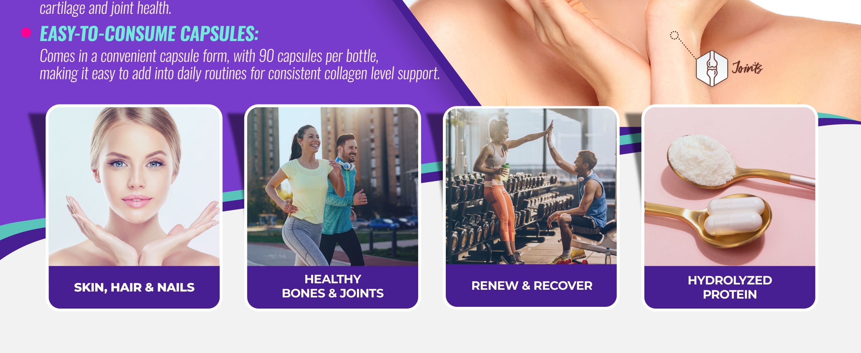 It’s intended to help compensate for the age-related decline in collagen production (which starts around age 30) and support things like skin tone and firmness, joint mobility, connective-tissue strength (ligaments/tendons/cartilage), bone strength, muscle recovery, and even hair/nail health.Note: As with all dietary supplements, the features described are “support” oriented and the product is not intended to diagnose, treat, cure or prevent any disease.